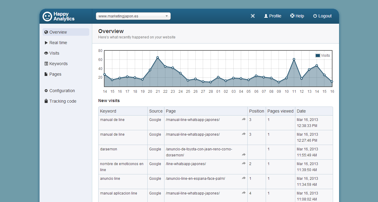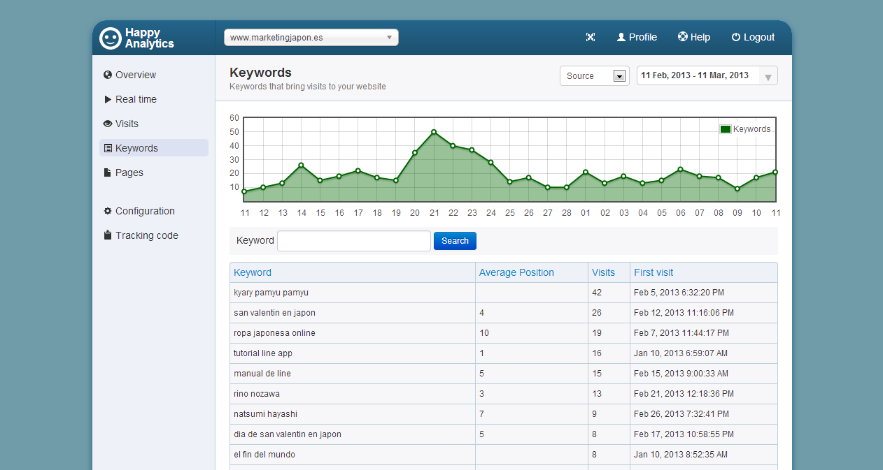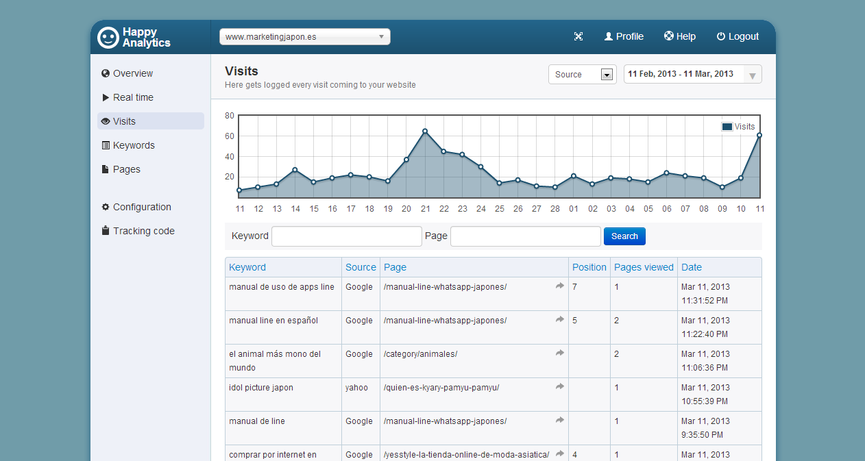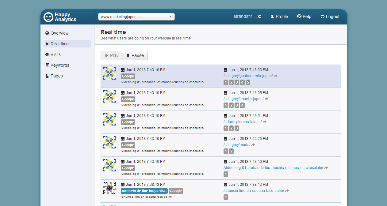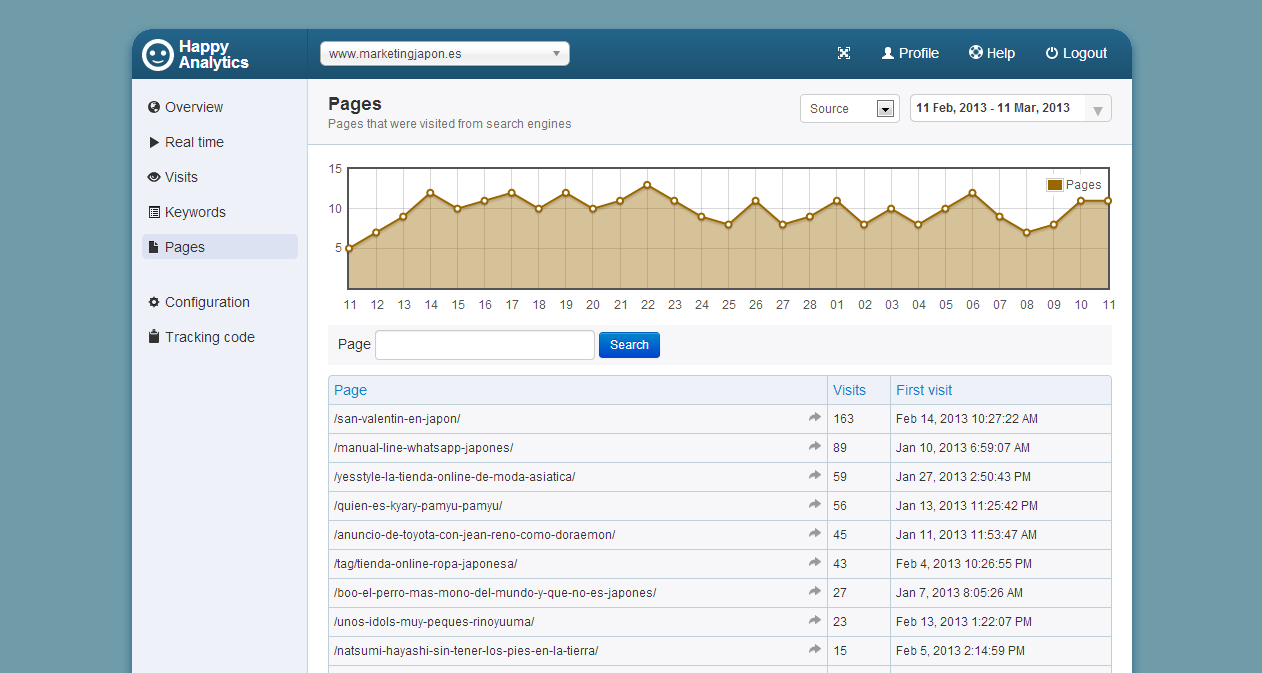HappyAnalytics es una herramienta de medición que sólo analiza y devuelve métricas exclusivamente cuando el visitante ha utilizado un motor de búsqueda como herramienta. En lo profesional, me ha parecido muy interesante esta segmentación; ya que desde el SEO se lleva cabo una optimización para mejorar, precisamente, el tráfico que proviene desde los motores de búsqueda. El tráfico directo forma parte del trabajo acabado del SEO, de la fidelización del visitante que ya se ha convertido en usuario. Y el tráfico referido se obtiene bajo una de 2 condiciones: