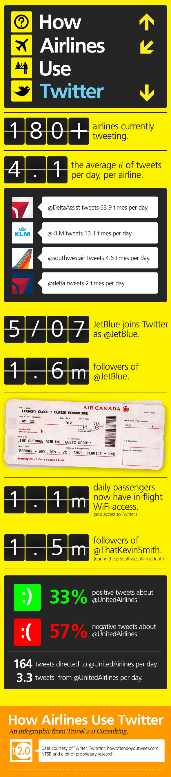Infografía de como las empresas de aerolíneas utilizan Twitter